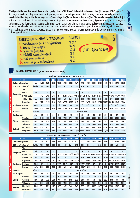 Profcold Soğukoda Endüstriyel Merkezi Inverter Serisi Su Soğutmalı Soğuk Muhafaza - 5 / + 5 ˚C