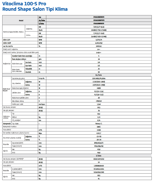 Viessmann Vitoclima 100-S Pro Round Shape A++ 24.000 BTU Inverter Salon Tipi Klima